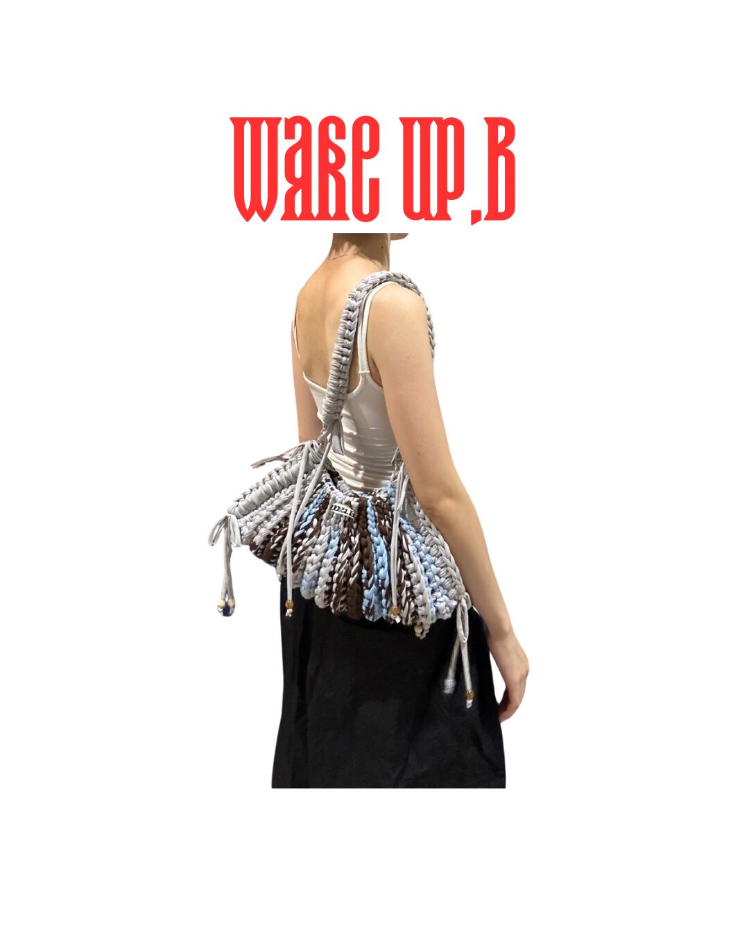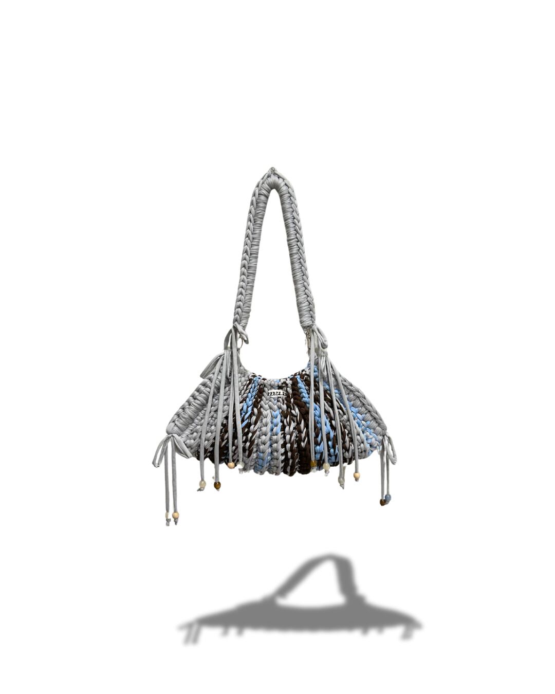 Tシャツを再利用してつくられたTシャツヤーンを使って、ひとつひとつ丁寧に編み上げました。