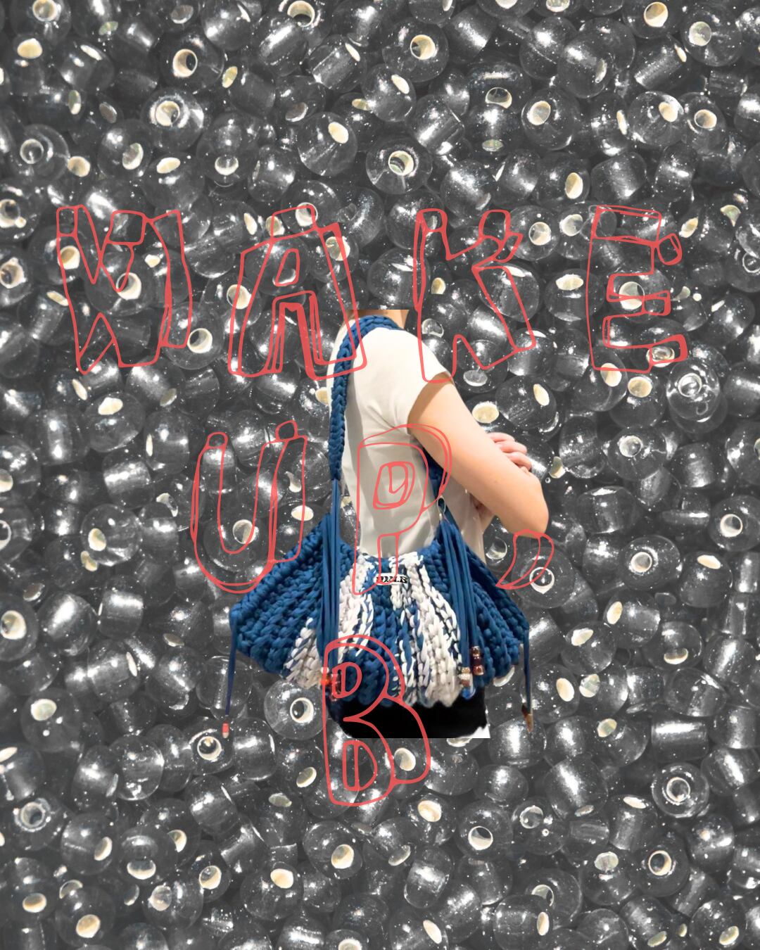 Tシャツを再利用してつくられたTシャツヤーンを使って、ひとつひとつ丁寧に編み上げました。