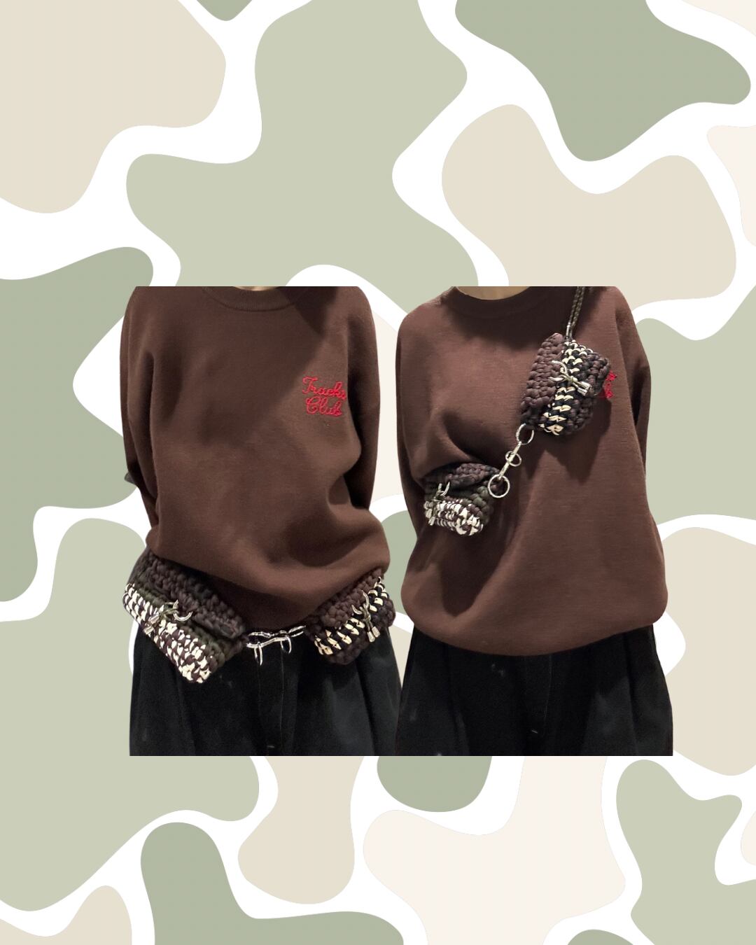 ひとつひとつ丁寧に編み上げたウエストバッグです。