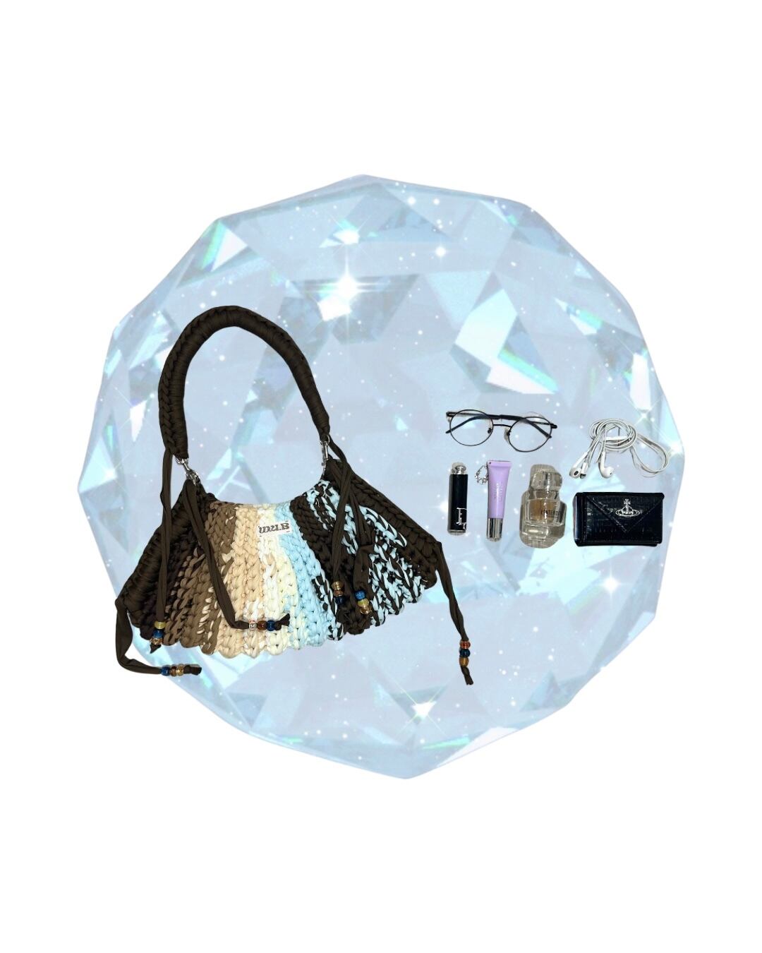 Tシャツを再利用してつくられたTシャツヤーンを使って、ひとつひとつ丁寧に編み上げました。