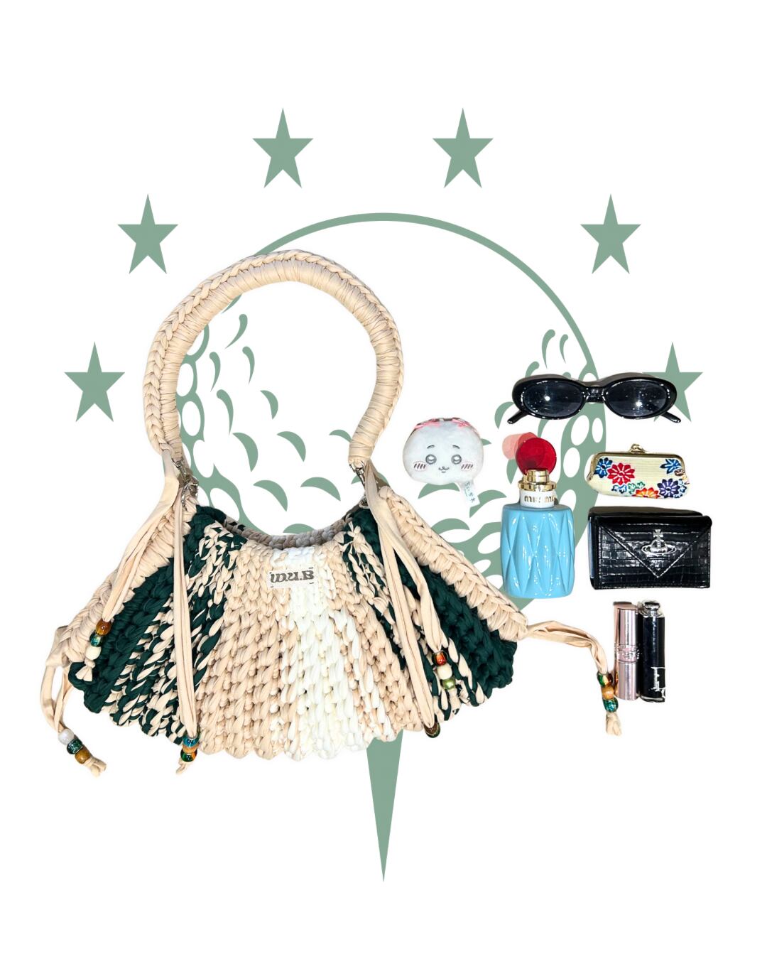 Tシャツを再利用して作られたTシャツヤーンを使用し、ひとつひとつ丁寧に編み上げました。