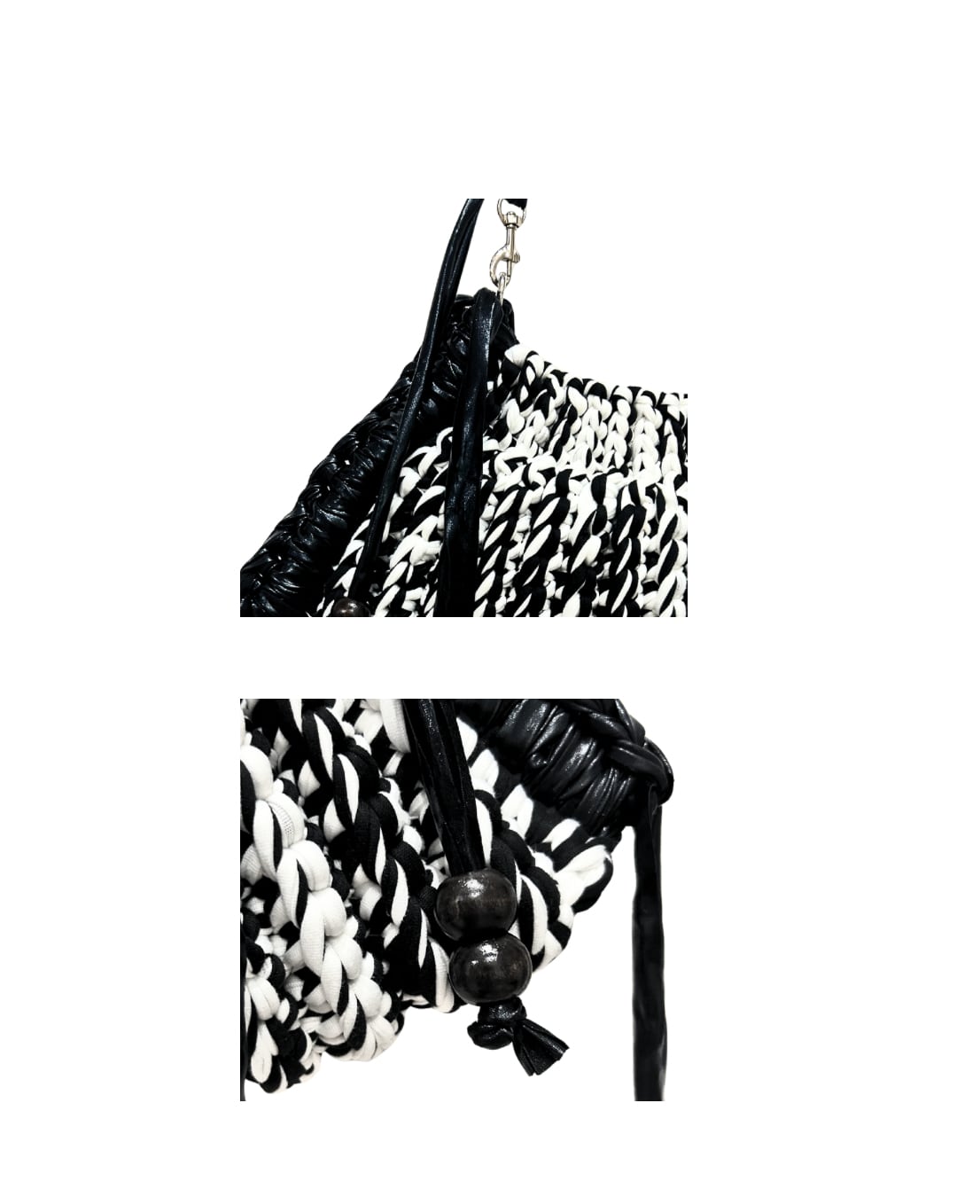 Tシャツを再利用して作られたTシャツヤーンを使用し、ひとつひとつ丁寧に編み上げました。