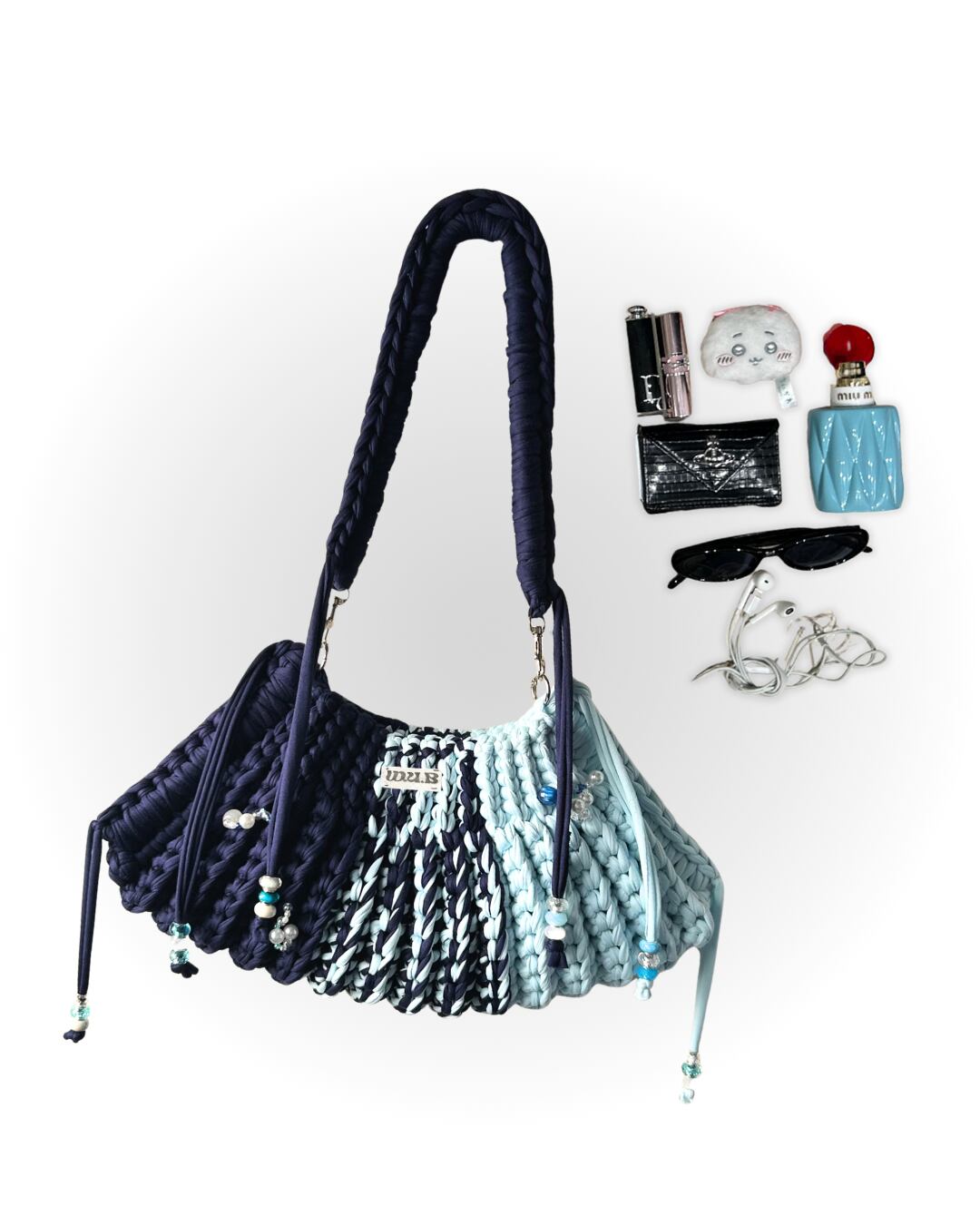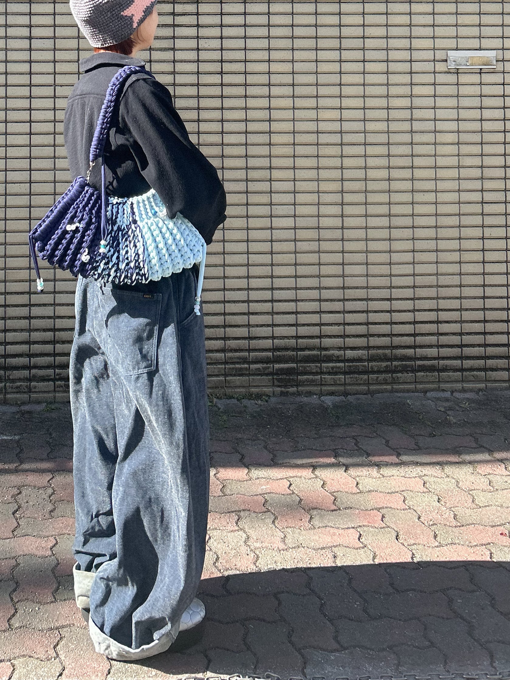 Tシャツを再利用して作られたTシャツヤーンを使用し、ひとつひとつ丁寧に編み上げました。